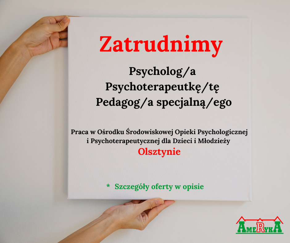do pracy w Ośrodku Środowiskowej Opieki Psychologicznej i Psychoterapeutycznej dla Dzieci i Młodzieży w Olsztynie.