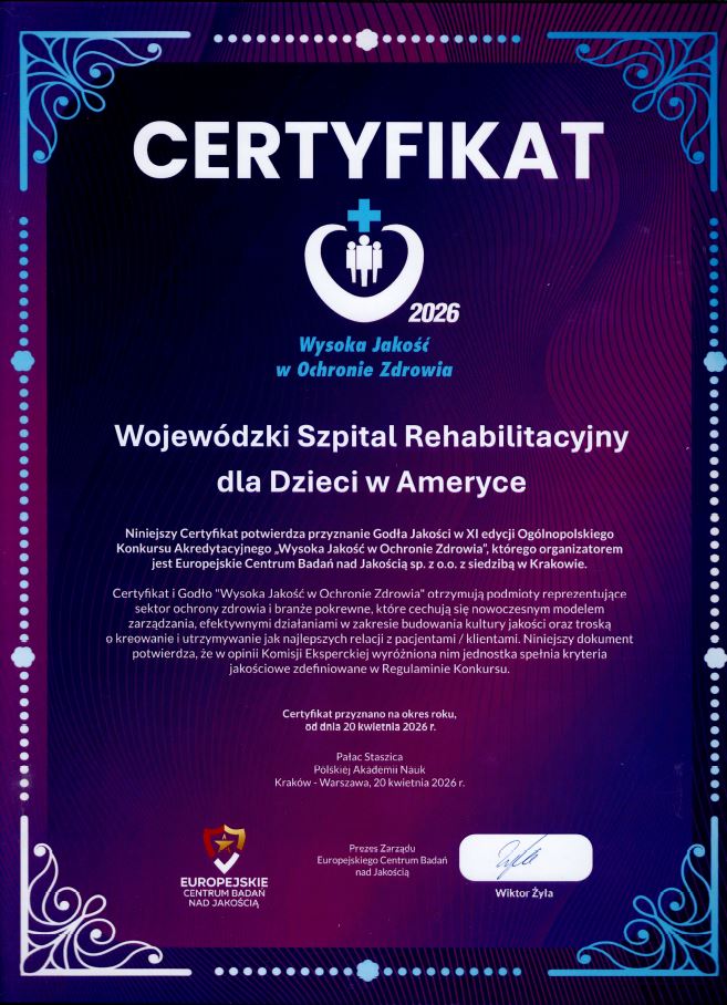 Nasz szpital znalazł się w gronie Laureatów XI edycji Ogólnopolskiego Konkursu Akredytacyjnego „Wysoka Jakość w Ochronie Zdrowia”, organizowanego przez Europejskie Centrum Badań nad Jakością sp. z o.o. z siedzibą w Krakowie.